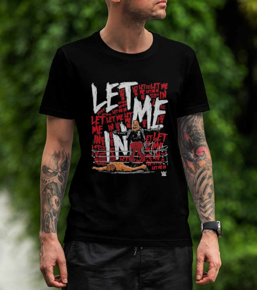 The Bray Wyatt WWE Let Me In 500 Level Repeat T-shirt is designed for everyday wear and a consistent fit. Fabric is pre-shrunk ring-spun cotton with durable stitching. See the size chart below for exact measurements.