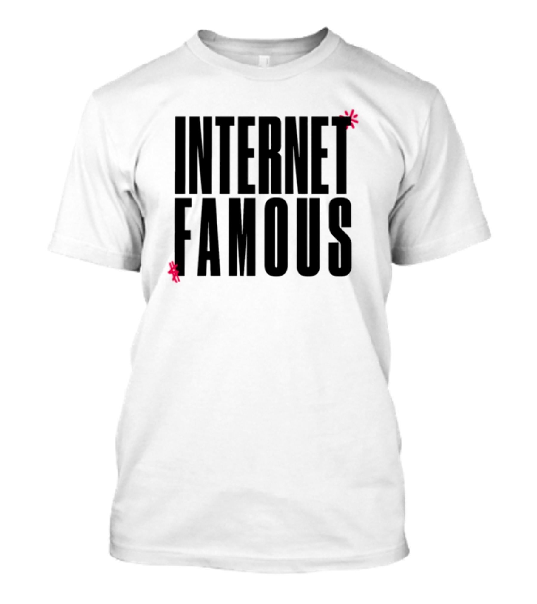The INTERNET FAMOUS Icon Black Red Accents T-shirt is designed for everyday wear and a consistent fit. Fabric is pre-shrunk ring-spun cotton with durable stitching. See the size chart below for exact measurements.
