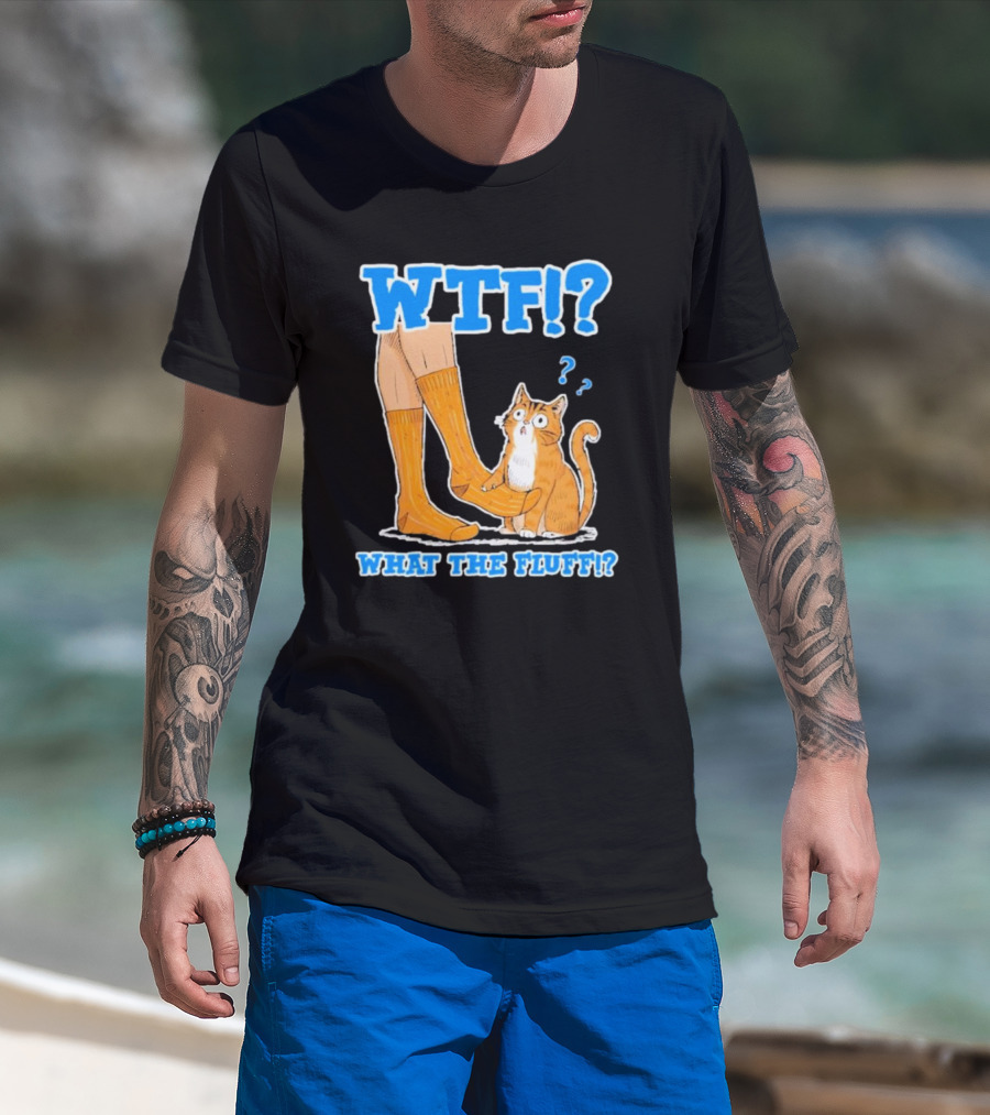 The WTF What The Fluff Funny Cat Meme Confused Cat with Socks T-shirt is designed for everyday wear and a consistent fit. Fabric is pre-shrunk ring-spun cotton with durable stitching. See the size chart below for exact measurements.