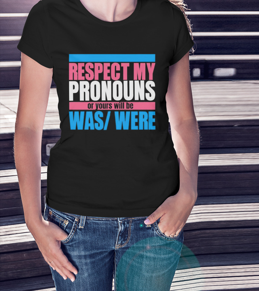 Respect My Pronouns Or Yours Will Be Was Were Pink Blue T-Shirt