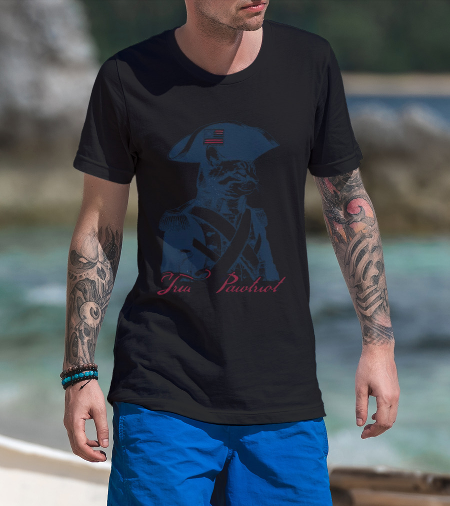 True Pawtriot Cat Colonial American Flag Hat Feline T-Shirt