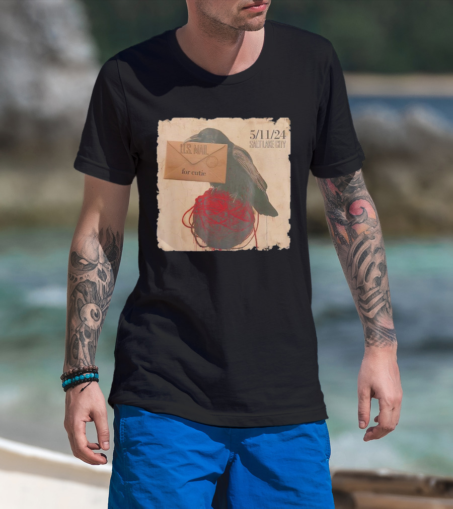 US Mail For Cutie 5/11/24 Salt Lake City Raven With Envelope And Red String T-Shirt