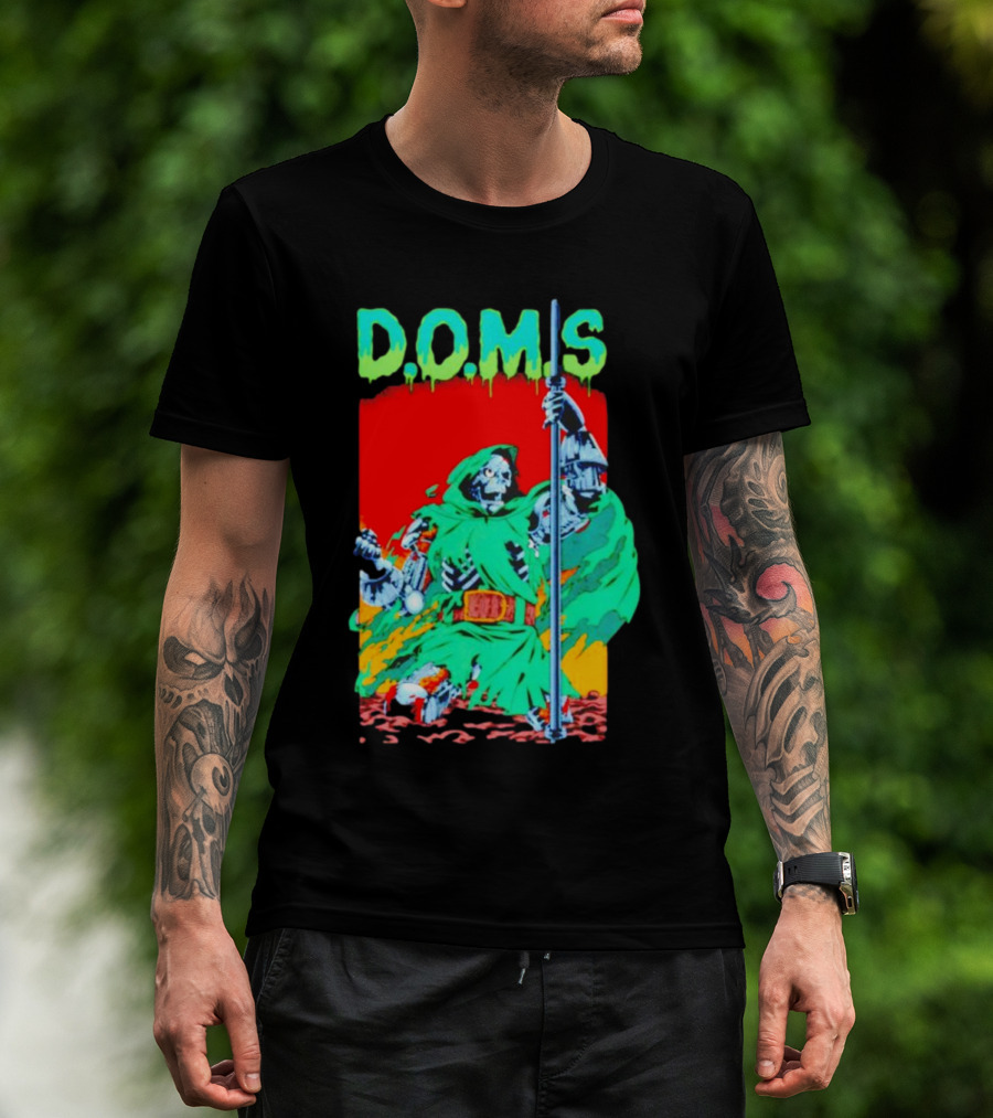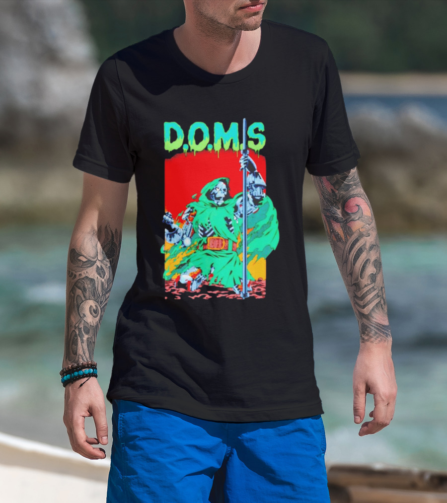 The D.O.M.S Skeleton Warrior in Green Cloak Holding Staff T-shirt is designed for everyday wear and a consistent fit. Fabric is pre-shrunk ring-spun cotton with durable stitching. See the size chart below for exact measurements.