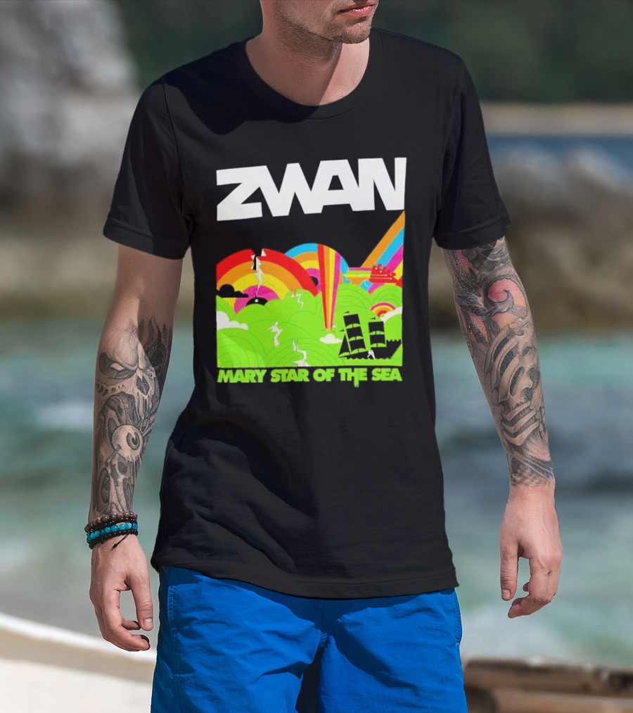 Zwan Mary Star Of The Sea Rainbow Waves Sailboat T-Shirt