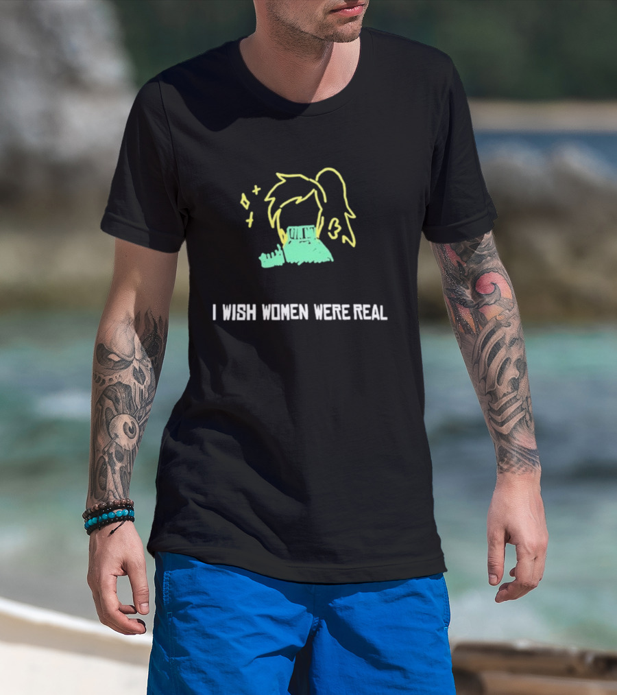 I Wish Women Were Real Neon Anime Style Pixel Art Dream T-Shirt