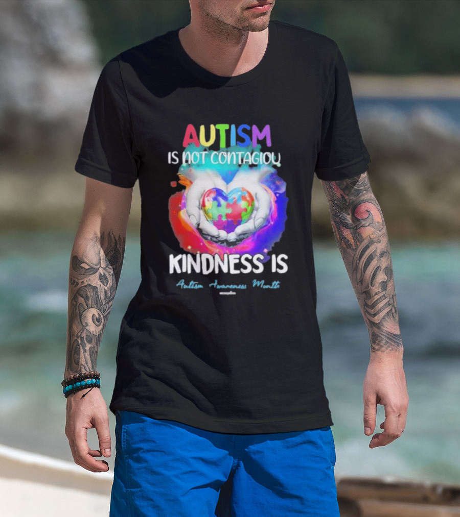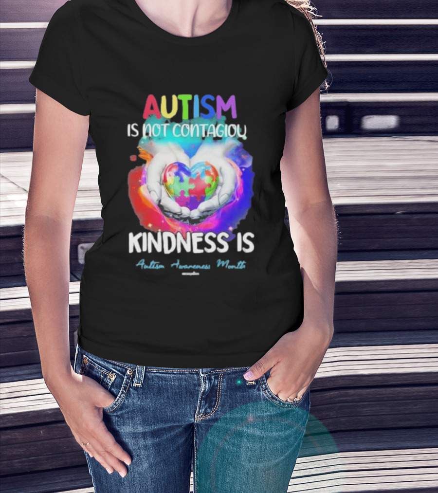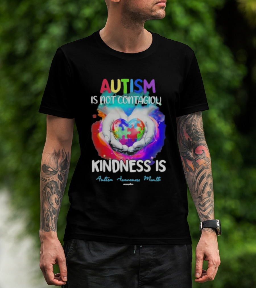 Autism Is Not Contagious Kindness Is Heart Hands Autism Awareness Month T-Shirt