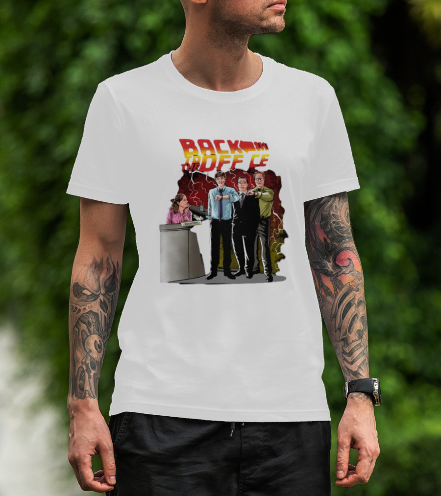 Back To The Office Men At Reception: Humorous Nostalgia With Lightning Burst T-Shirt