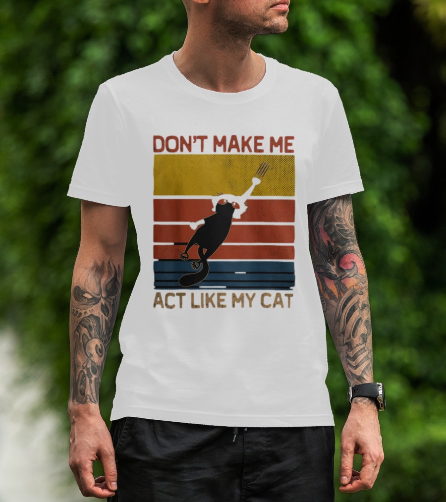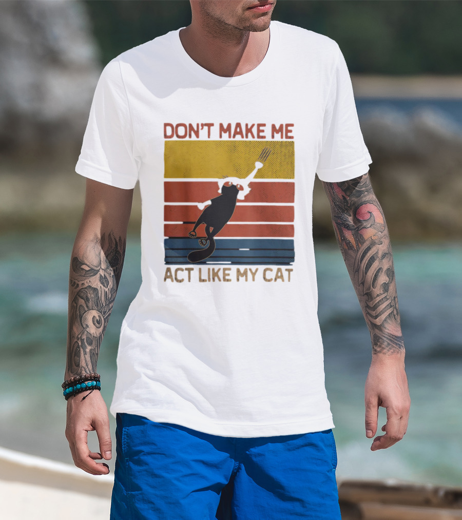 Don't Make Me Act Like My Cat Vintage Retro Style Cat Clawing Stripes T-Shirt