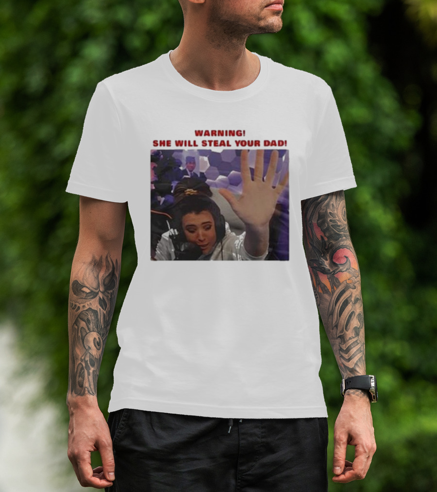 Warning She Will Steal Your Dad Raised Hand Microphone Scene T-Shirt