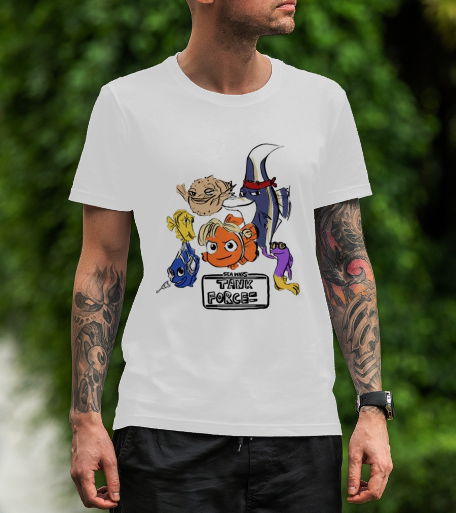 Sea Wars Tank Force Cartoon Fish Characters T-Shirt