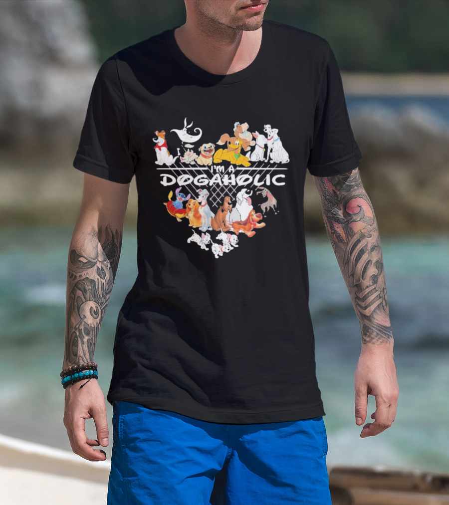 I'm A Dogaholic With Iconic Cartoon Dogs Heart T-Shirt