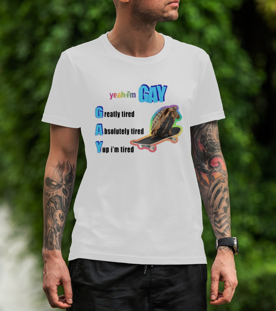 Yeah I'm Gay Greatly Tired Absolutely Tired Yup I'm Tired Turtle Skateboard T-Shirt