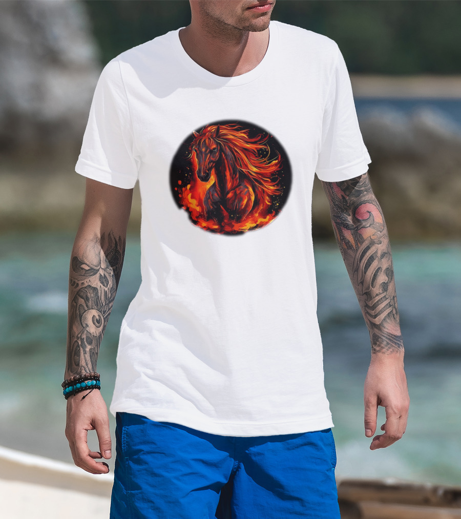 Fiery Horse With Flames For Funny Horse Lovers T-Shirt