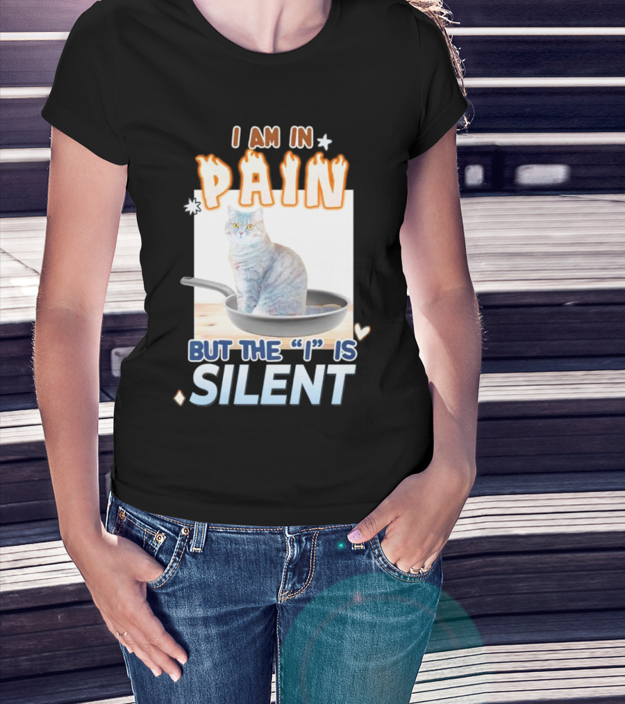 I Am In Pain But The I Is Silent Cat Sitting In Pan T-Shirt