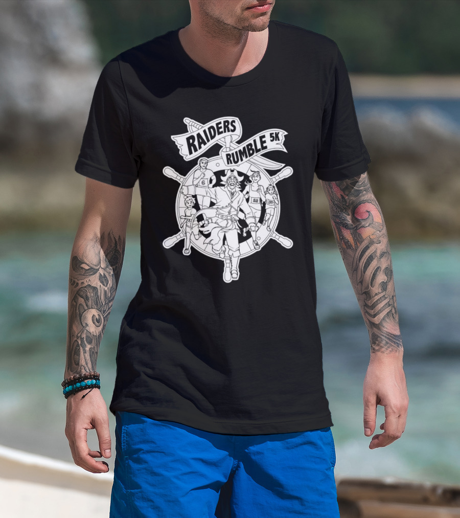 Raiders Rumble 5k Pirate Race Event Wheel Flag Running Contest T-Shirt