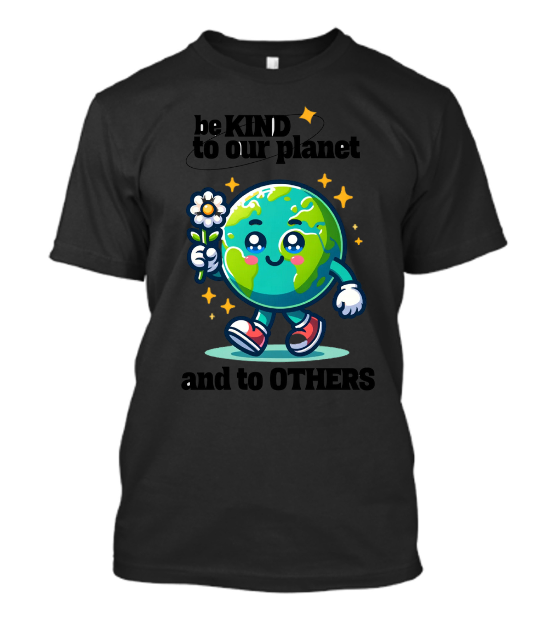 The Be Kind to Our Planet and to Others Cute Earth Character with Flower and Stars T-shirt is designed for everyday wear and a consistent fit. Fabric is pre-shrunk ring-spun cotton with durable stitching. See the size chart below for exact measurements.