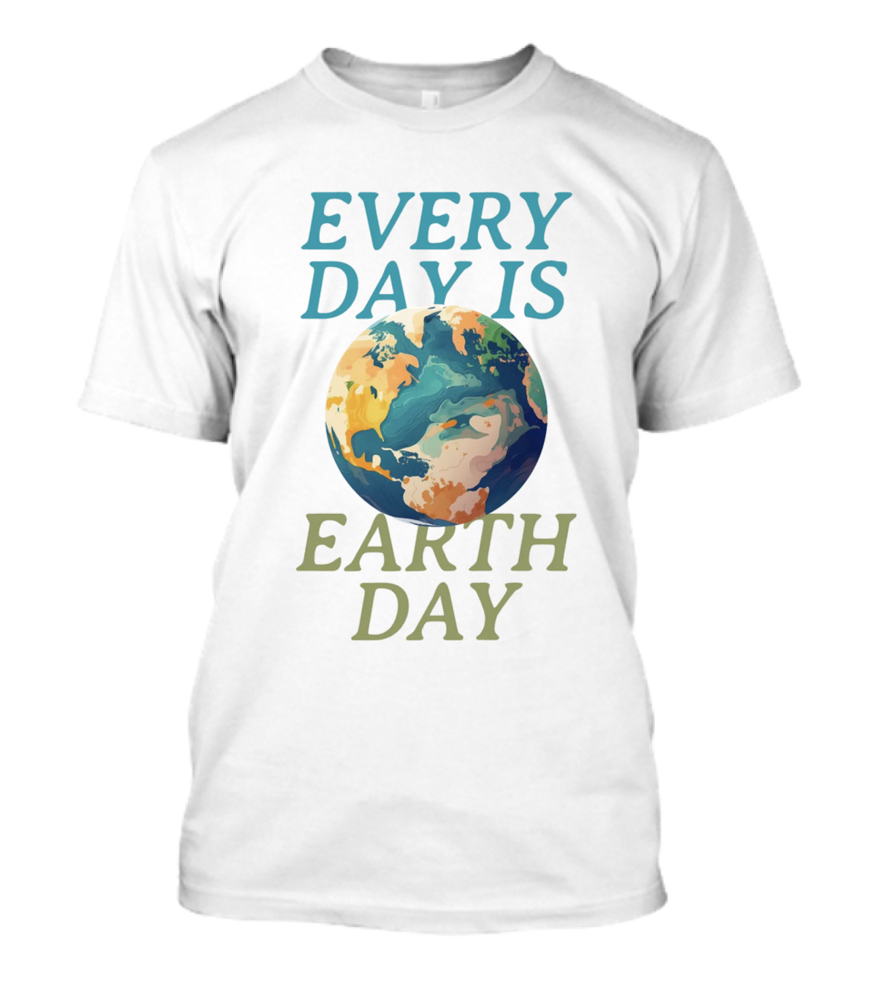 The Every Day Is Earth Day Planet T-shirt is designed for everyday wear and a consistent fit. Fabric is pre-shrunk ring-spun cotton with durable stitching. See the size chart below for exact measurements.