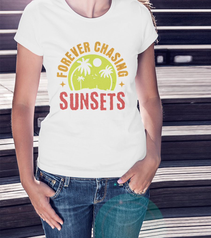 Forever Chasing Sunsets Retro Vintage Summer Vacation T-Shirt