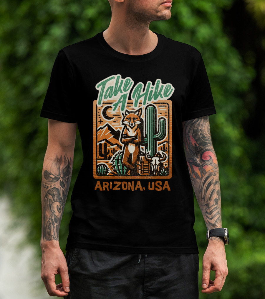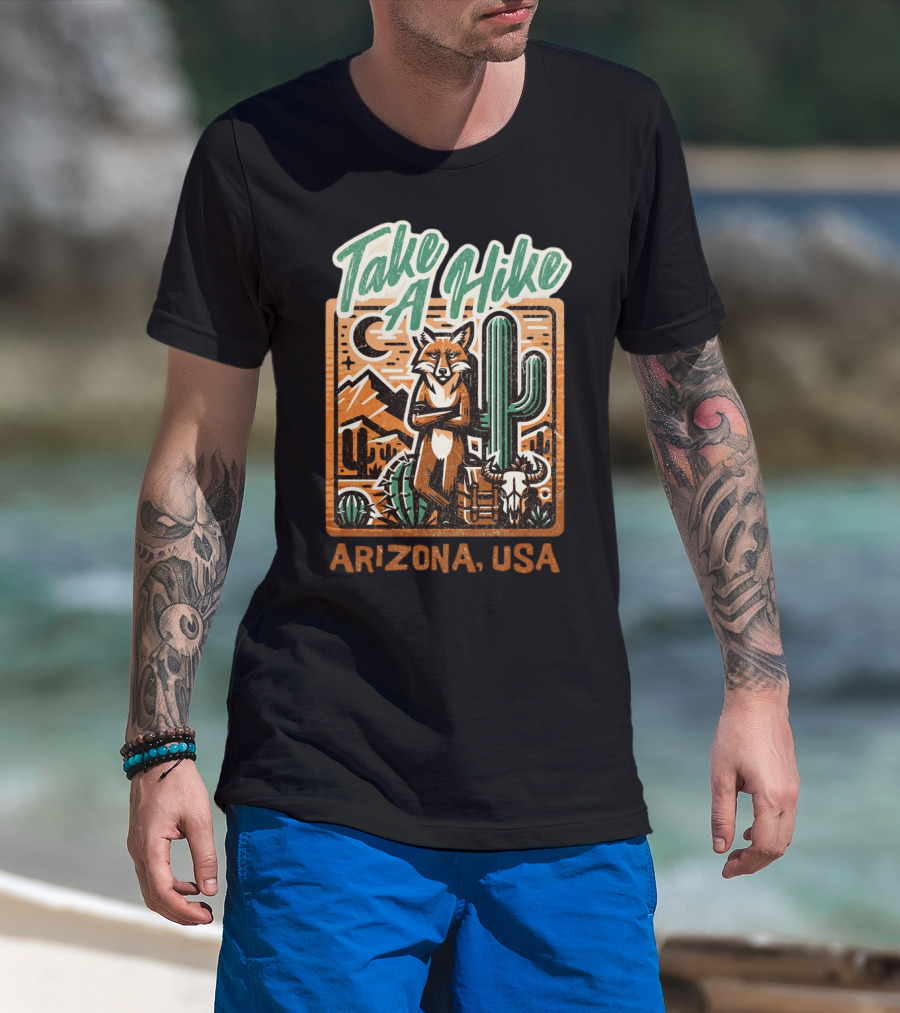 Take A Hike Arizona USA Desert Fox And Cactus Scene T-Shirt