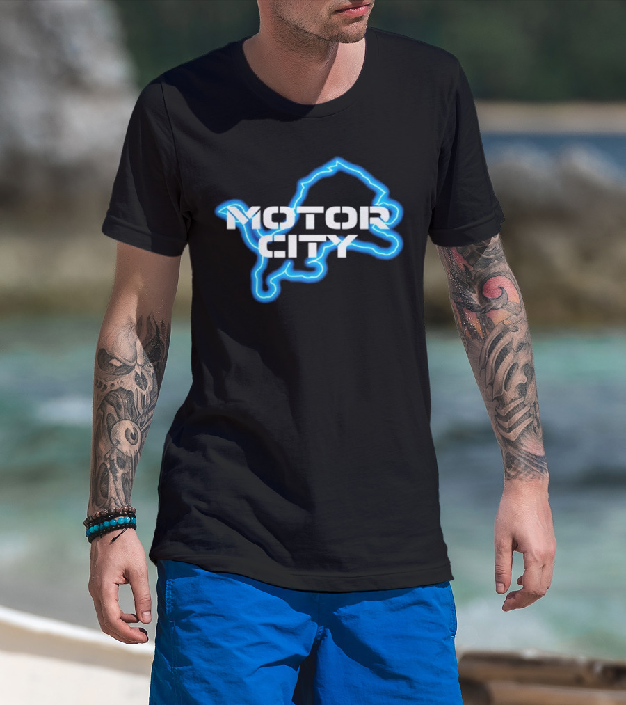 Sam Richardson Wearing Detroit Lions Motor City Blue Lion T-Shirt