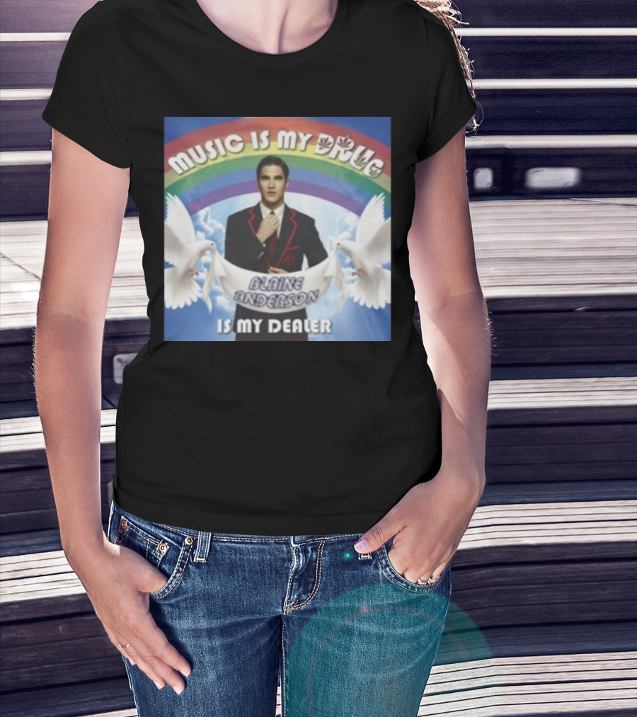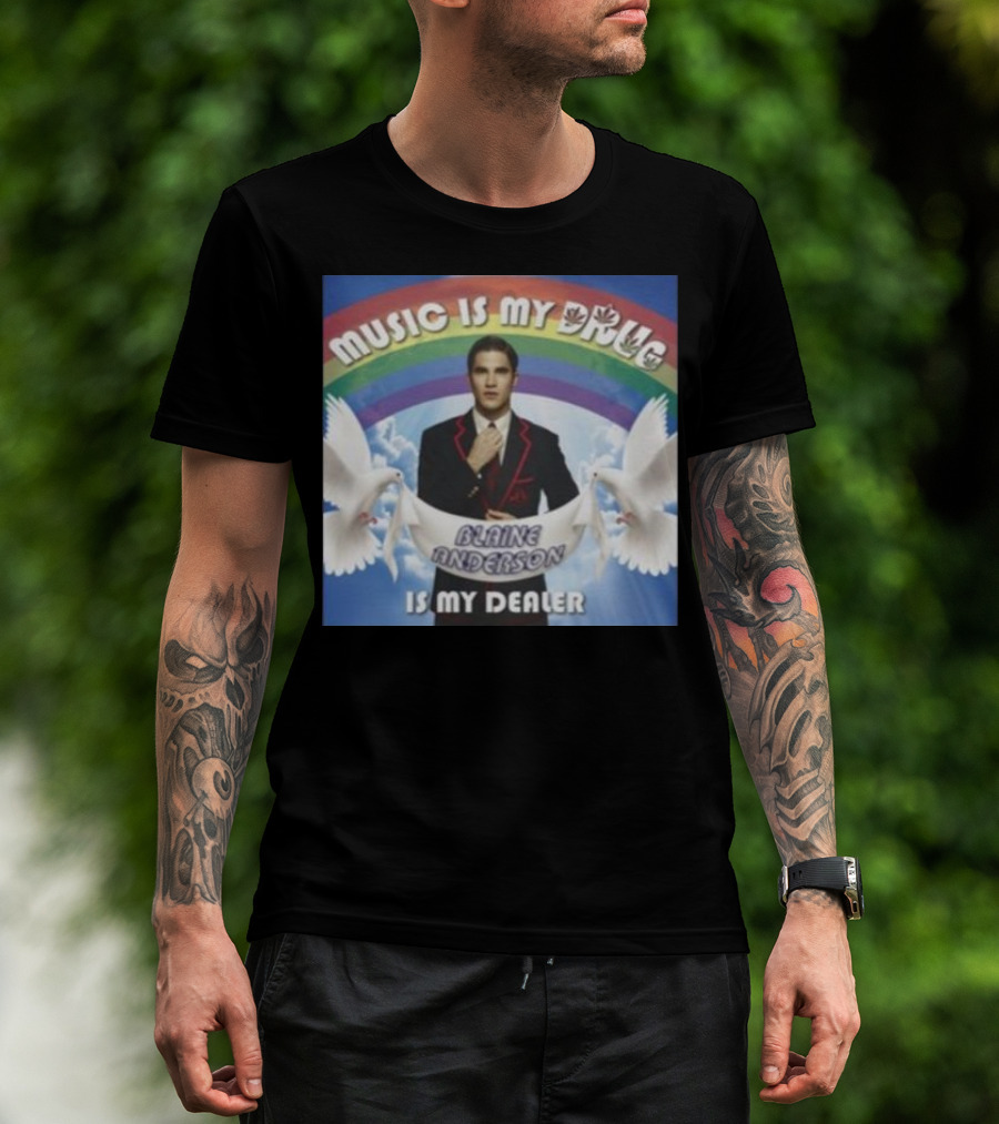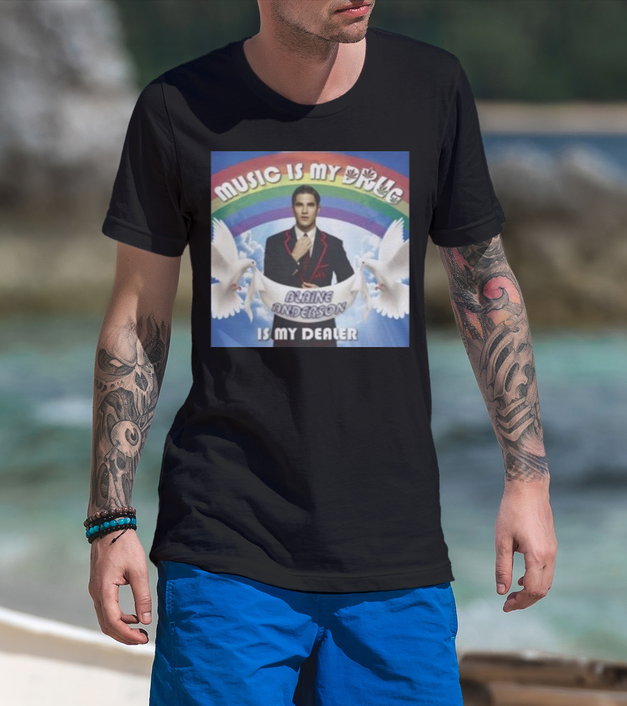 Music Is My Drug Blaine Anderson Is My Dealer Rainbow And Doves T-Shirt