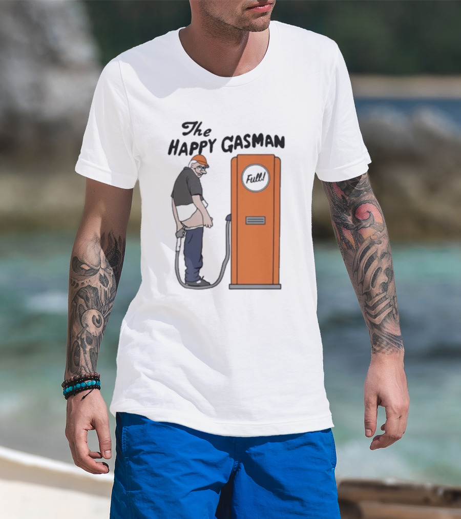 The The Happy Gasman Full T-shirt is designed for everyday wear and a consistent fit. Fabric is pre-shrunk ring-spun cotton with durable stitching. See the size chart below for exact measurements.