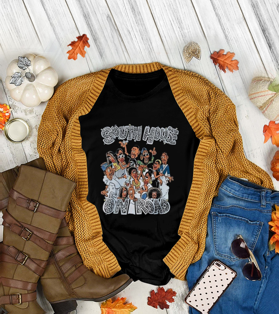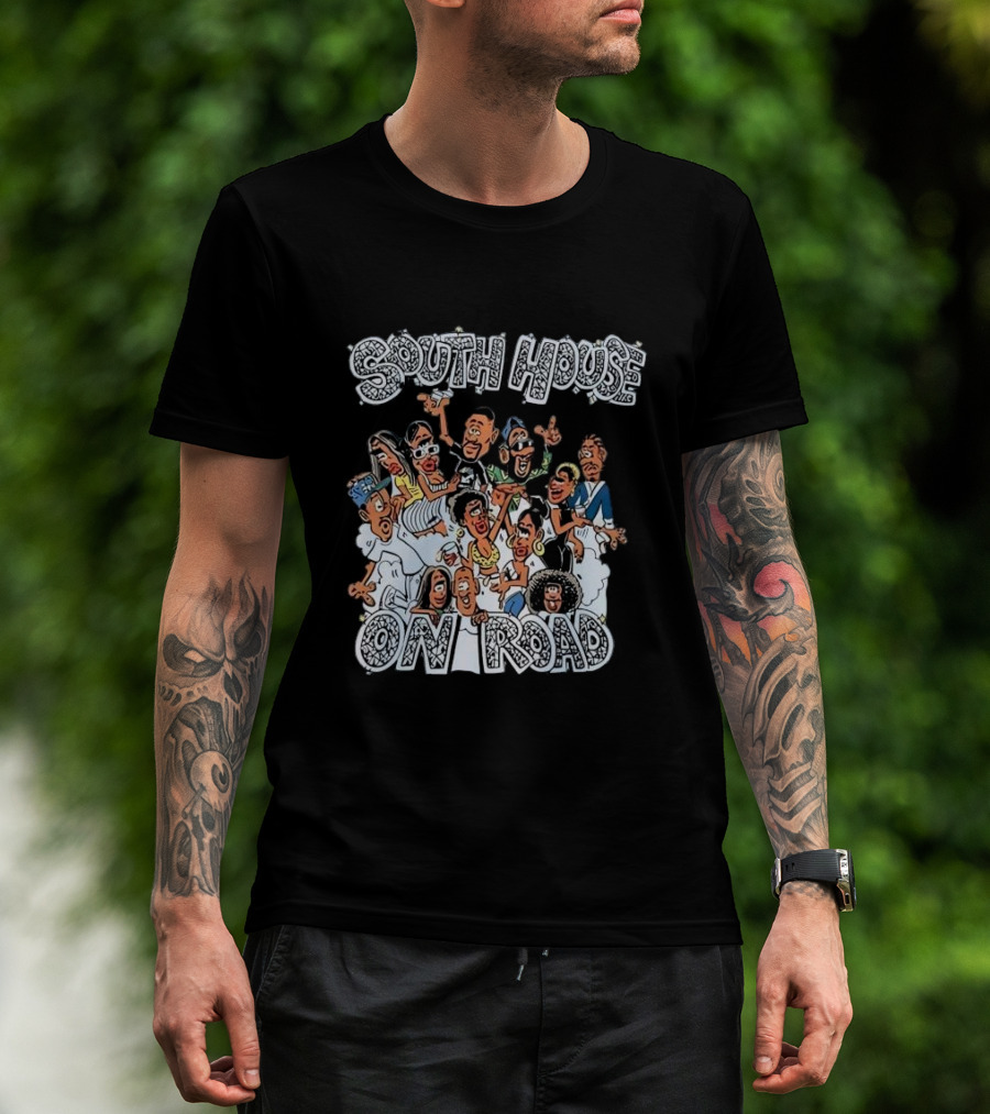 The South House On Road Cartoon Characters Party T-shirt is designed for everyday wear and a consistent fit. Fabric is pre-shrunk ring-spun cotton with durable stitching. See the size chart below for exact measurements.