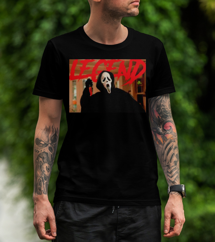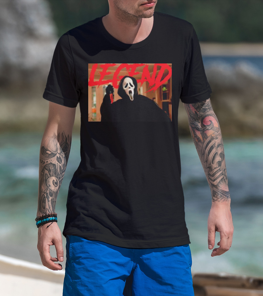 The Legend Ghostface Spooky Legends T-shirt is designed for everyday wear and a consistent fit. Fabric is pre-shrunk ring-spun cotton with durable stitching. See the size chart below for exact measurements.
