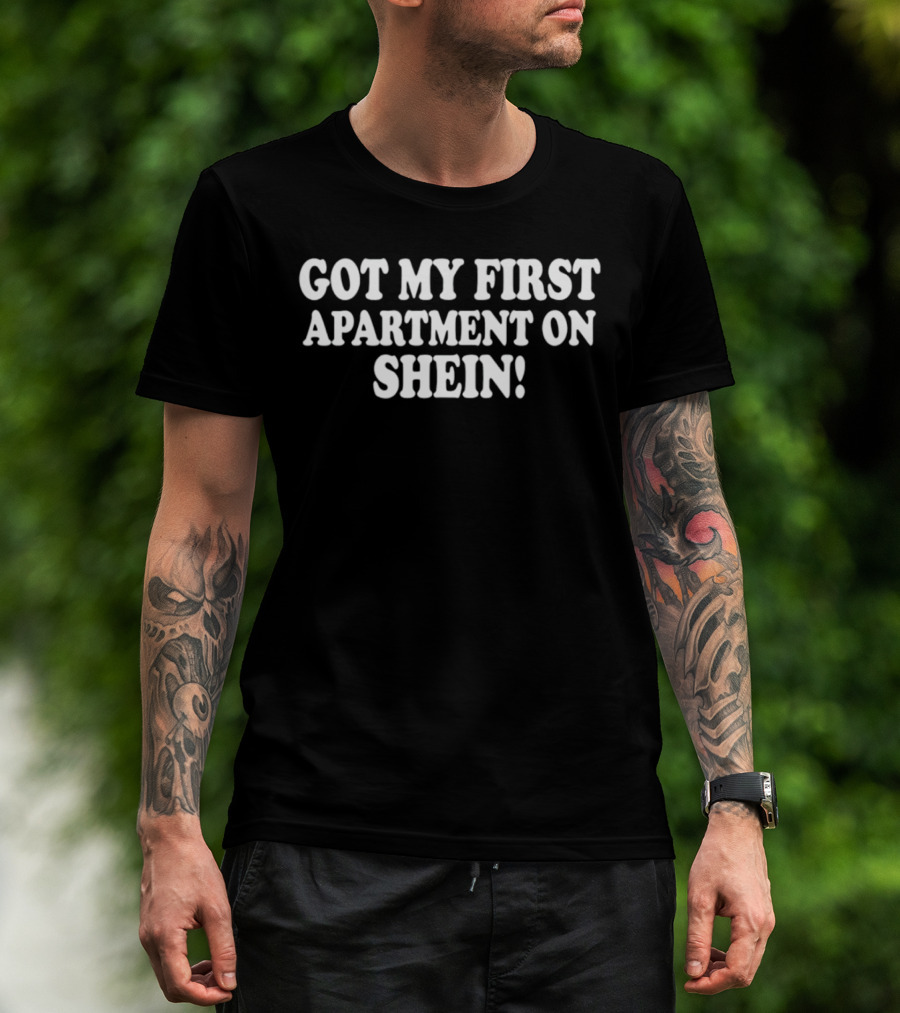 The Got My First Apartment on Shein T-shirt is designed for everyday wear and a consistent fit. Fabric is pre-shrunk ring-spun cotton with durable stitching. See the size chart below for exact measurements.