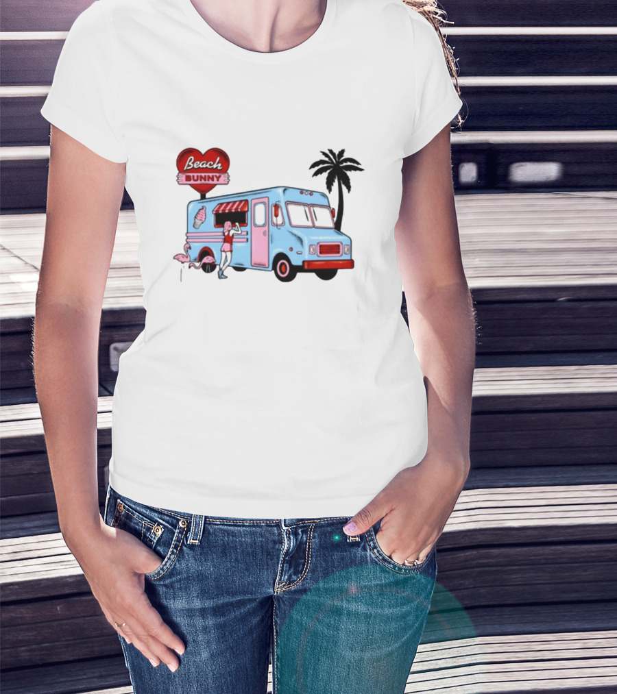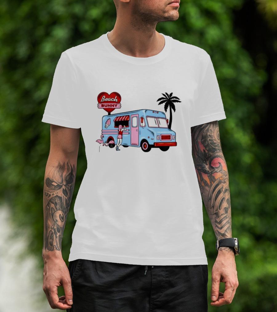 Beach Bunny Ice Cream Truck Flamingo Palm Tree T-Shirt