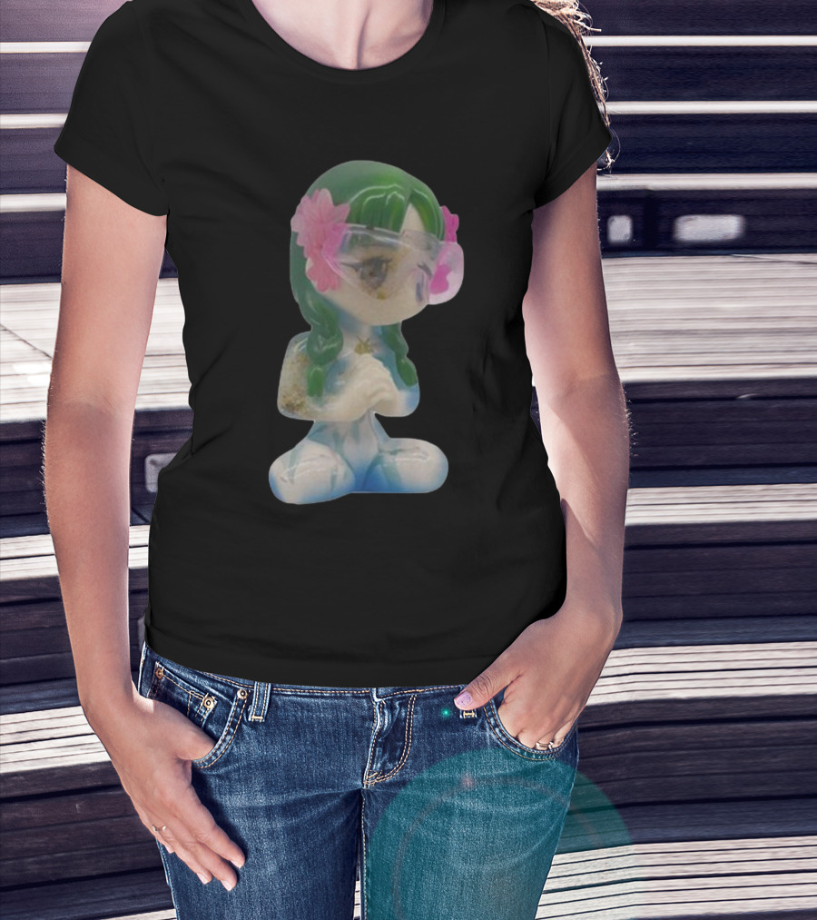 Kikillopieces Tanaka Resin Figurine With Green Hair And Pink Flower Accessories T-Shirt