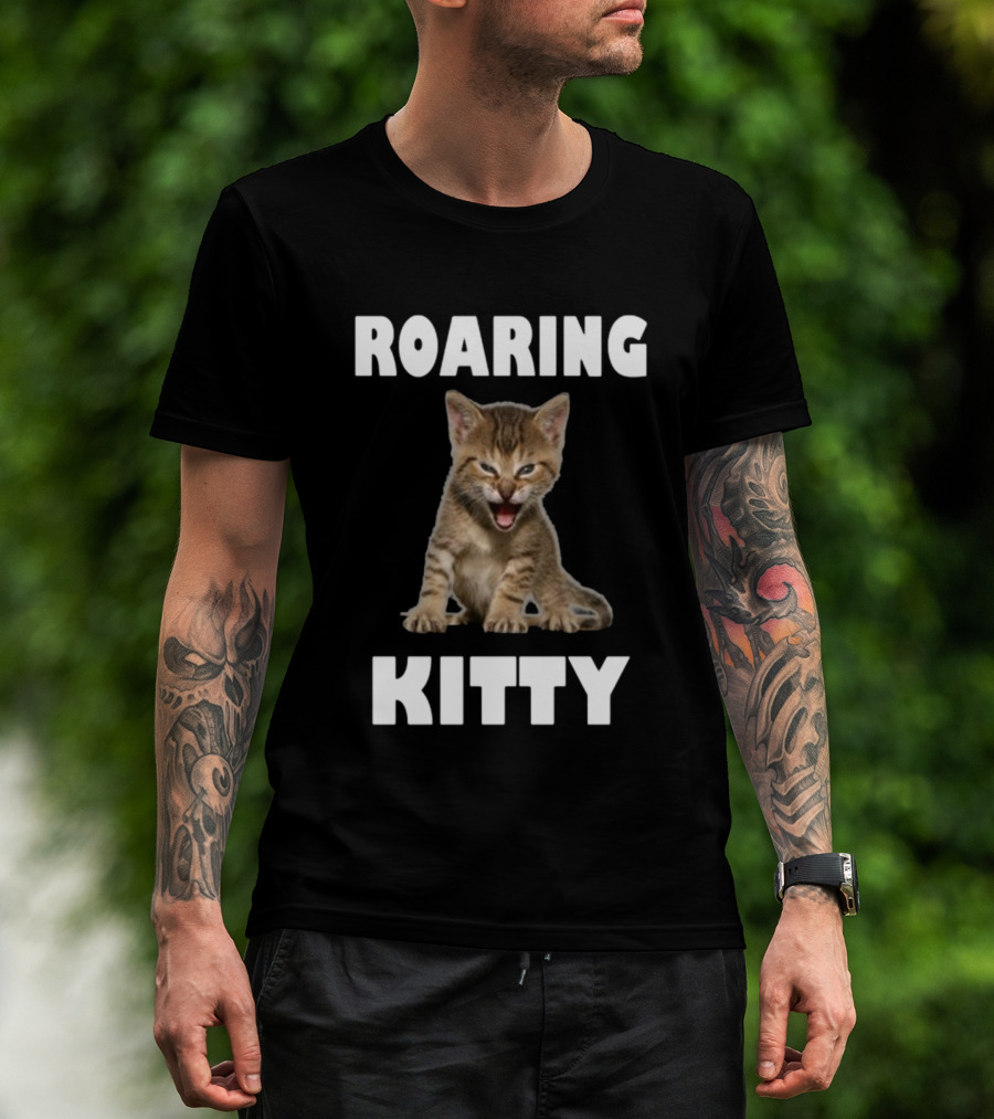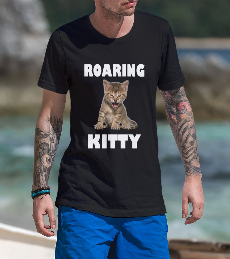 The Roaring Kitty T-shirt is designed for everyday wear and a consistent fit. Fabric is pre-shrunk ring-spun cotton with durable stitching. See the size chart below for exact measurements.