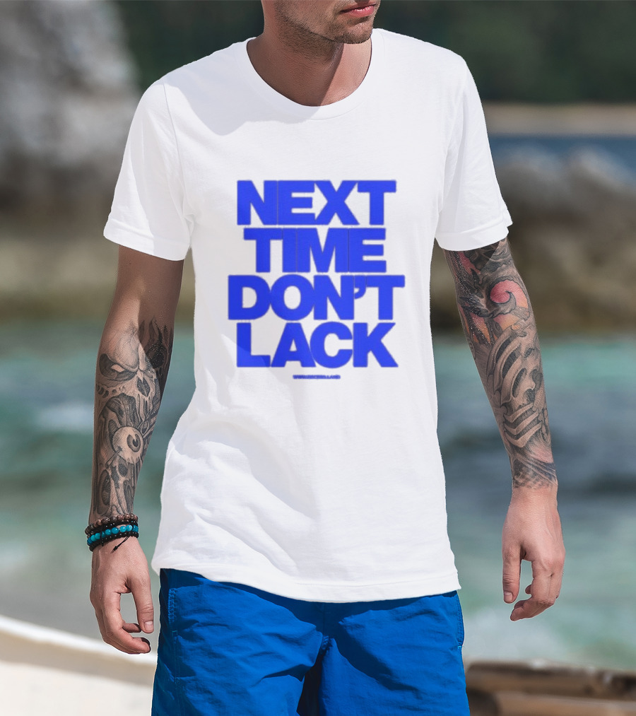 The NEXT TIME DON'T LACK Bold Blue Text T-shirt is designed for everyday wear and a consistent fit. Fabric is pre-shrunk ring-spun cotton with durable stitching. See the size chart below for exact measurements.