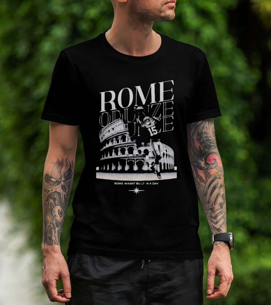 How much will this Rome Odunze Football Player Rome Wasn't Built in a Day Colosseum shirt shrink?