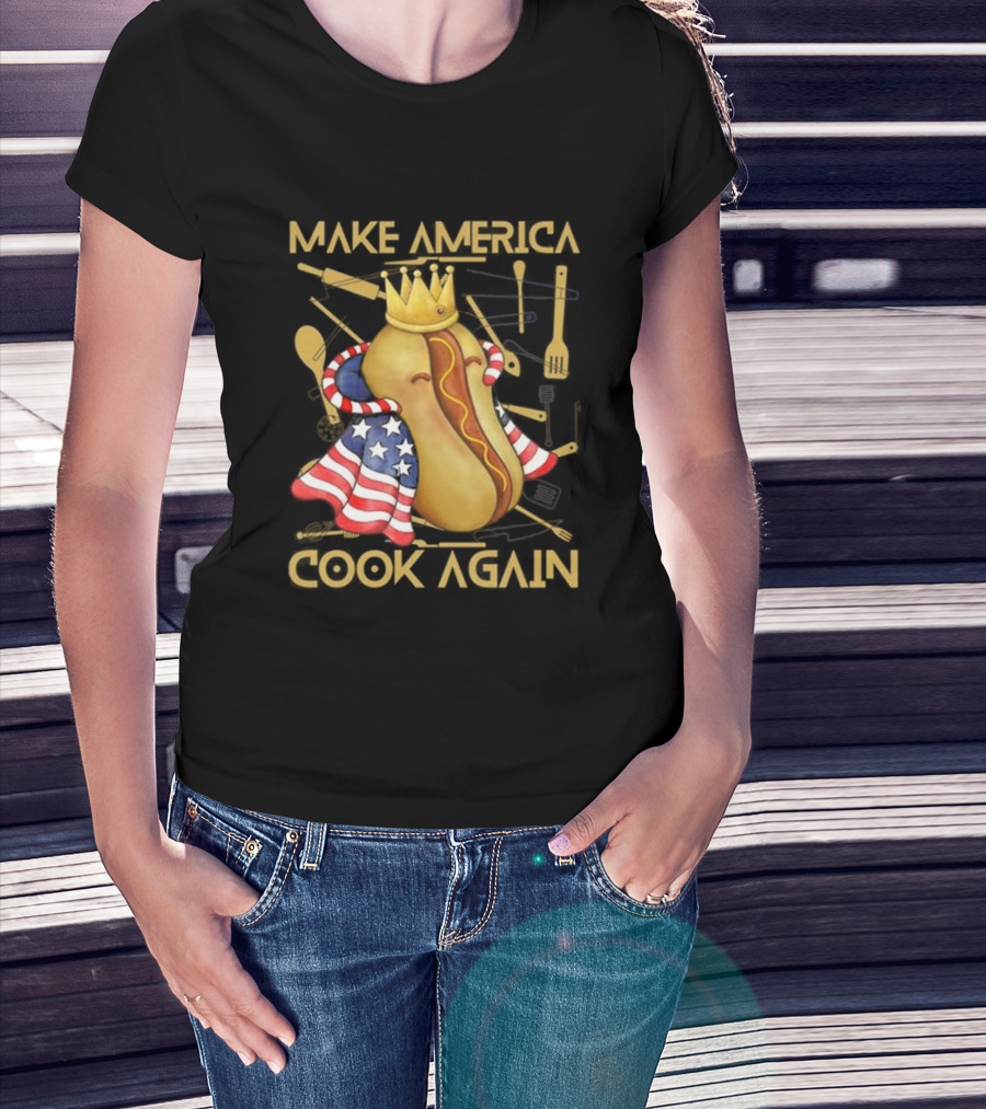 Make America Cook Again Hotdog With Crown And American Flag T-Shirt