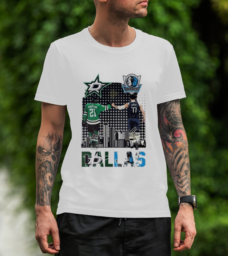 Dallas Stars Mavericks Robertson Doncic Skyline Signatures T-Shirt