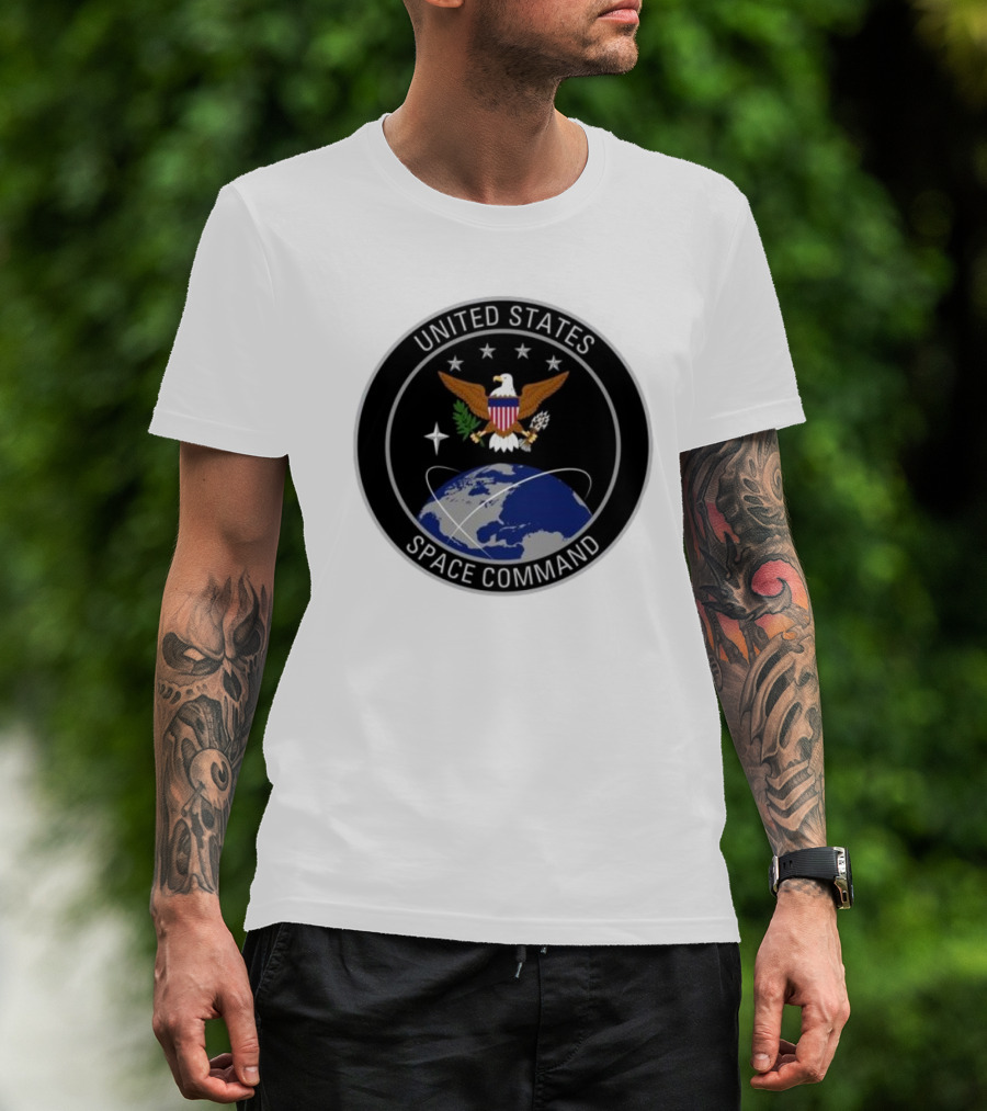 The United States Space Command Eagle Emblem T-shirt is designed for everyday wear and a consistent fit. Fabric is pre-shrunk ring-spun cotton with durable stitching. See the size chart below for exact measurements.