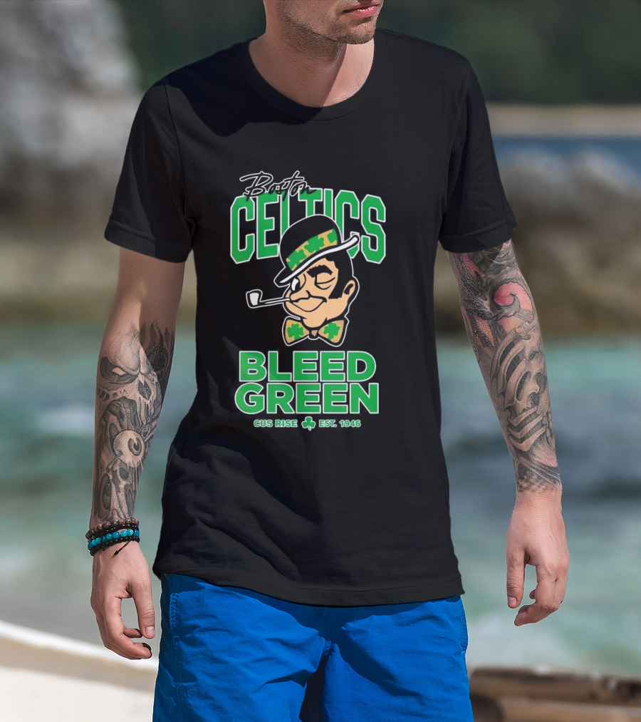 How much will this Boston Celtics Gus Rise Bleed Green Basketball Est 1946 shirt shrink?