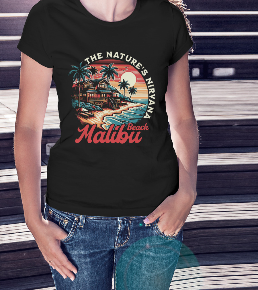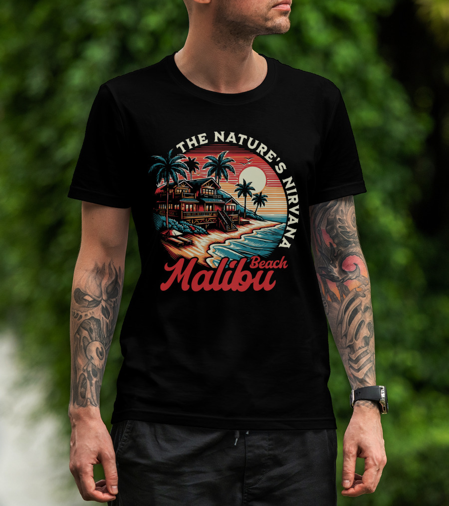 The Nature's Nirvana Malibu Beach Retro Sunset Scene T-Shirt