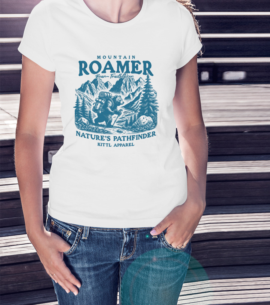 The MOUNTAIN ROAMER BEAR TRAILBLAZER NATURE'S PATHFINDER KITTl T-shirt is designed for everyday wear and a consistent fit. Fabric is pre-shrunk ring-spun cotton with durable stitching. See the size chart below for exact measurements.