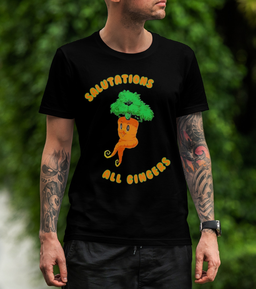 The Salutations All Gingers Happy Carrot T-shirt is designed for everyday wear and a consistent fit. Fabric is pre-shrunk ring-spun cotton with durable stitching. See the size chart below for exact measurements.