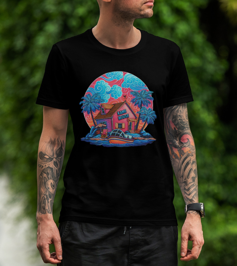 Kame House Vibrant Tropical Island Scene Dragon Ball T-Shirt