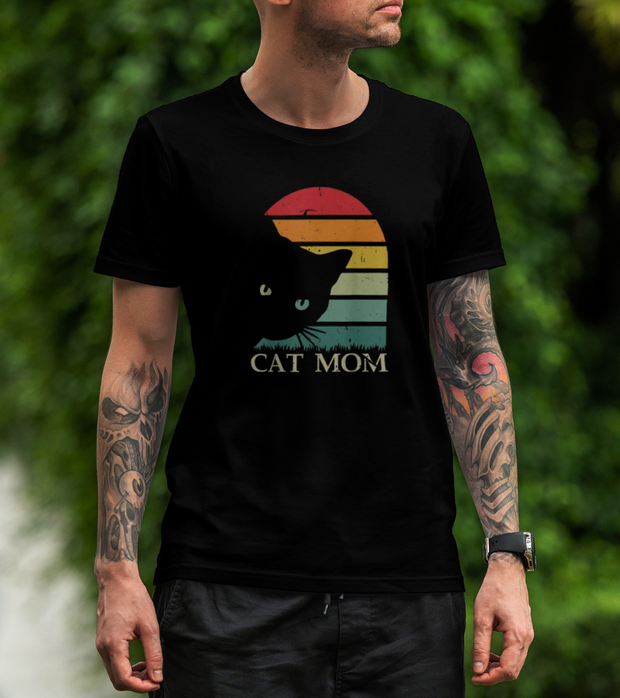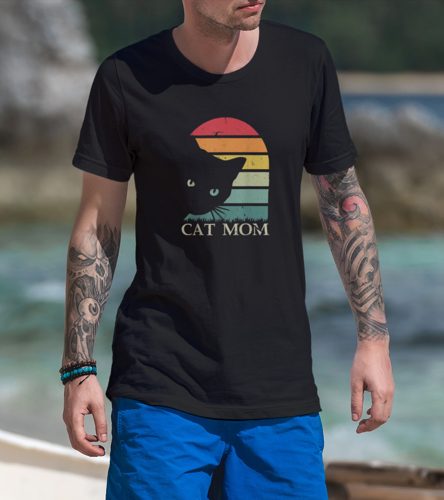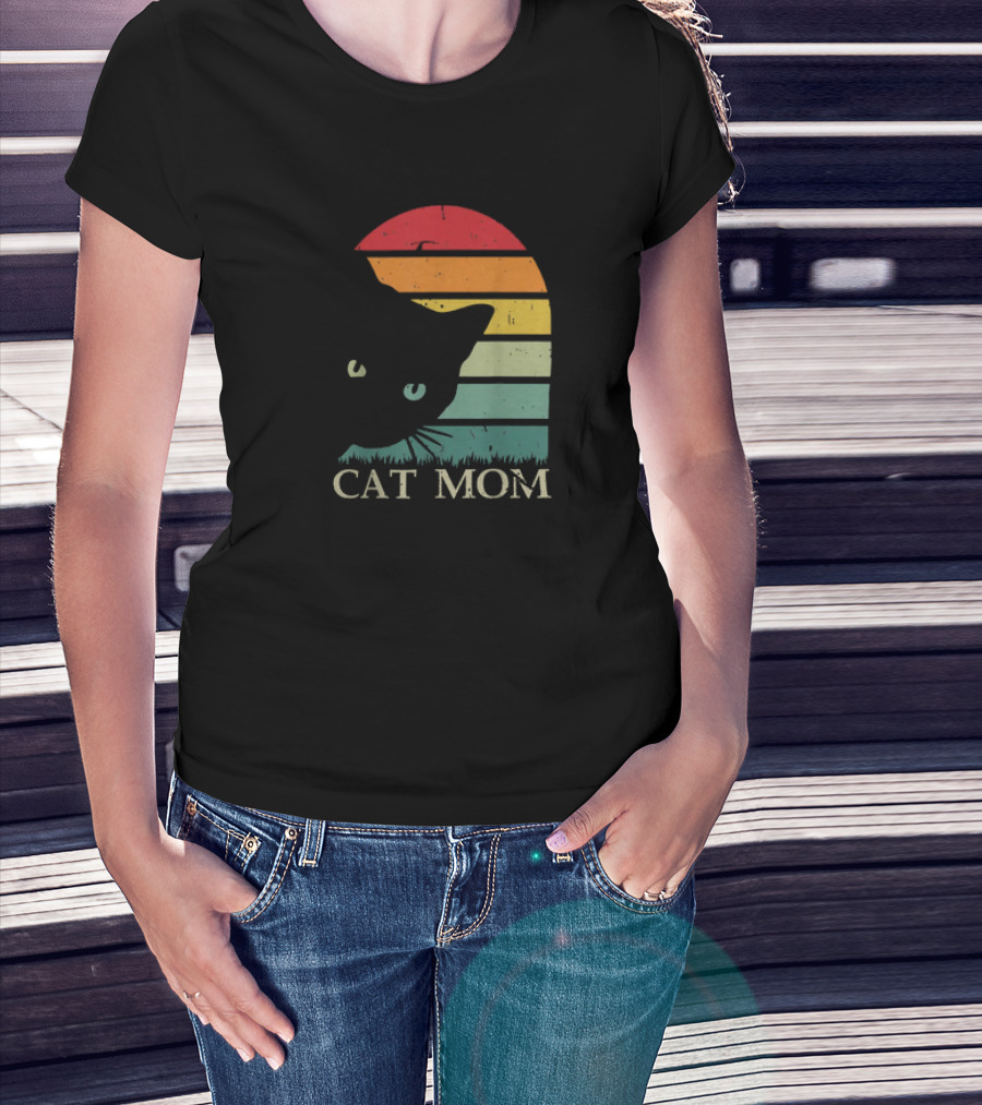 Vintage Cat Mom For Women Funny Cat Mom Mother Retro Sunset Cat T-Shirt