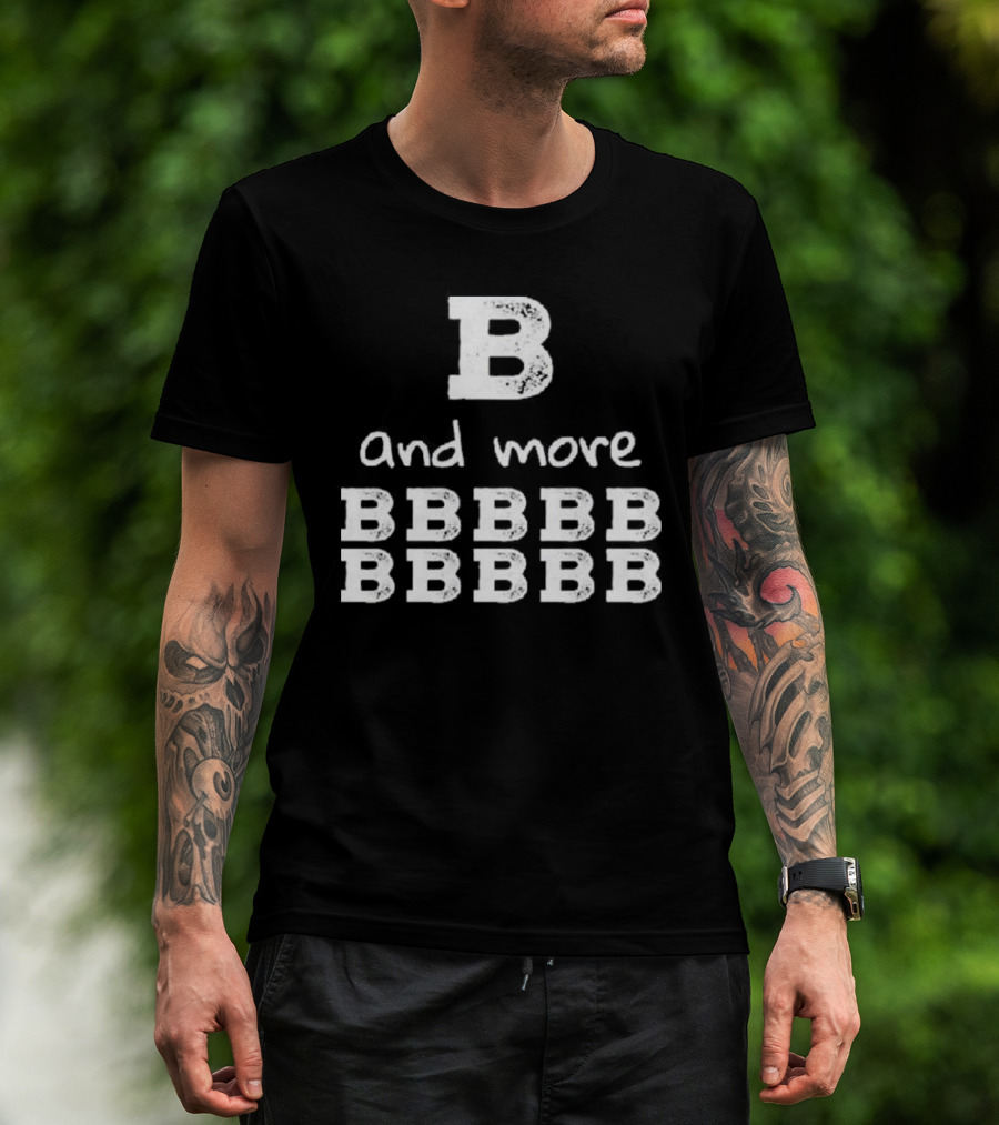 The B And More B B B B B B B B B B T-shirt is designed for everyday wear and a consistent fit. Fabric is pre-shrunk ring-spun cotton with durable stitching. See the size chart below for exact measurements.