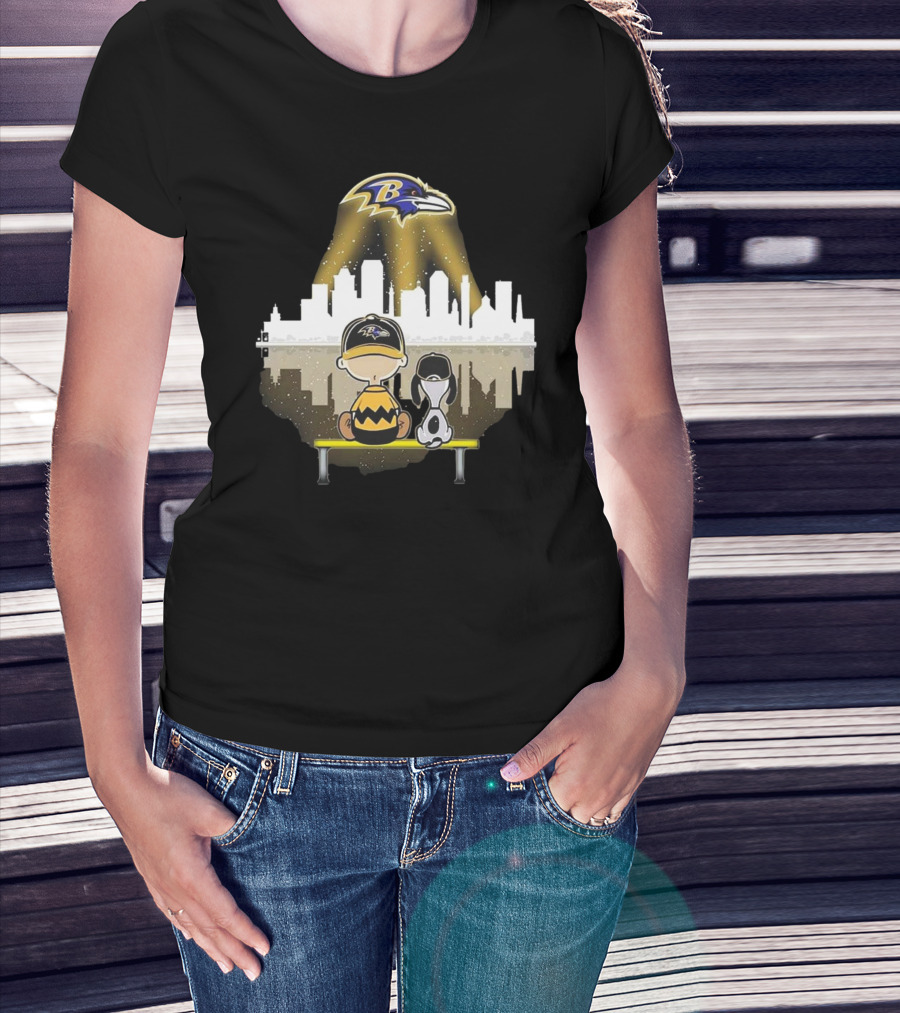 Charlie Brown Snoopy Baltimore Ravens City Skyline T-Shirt