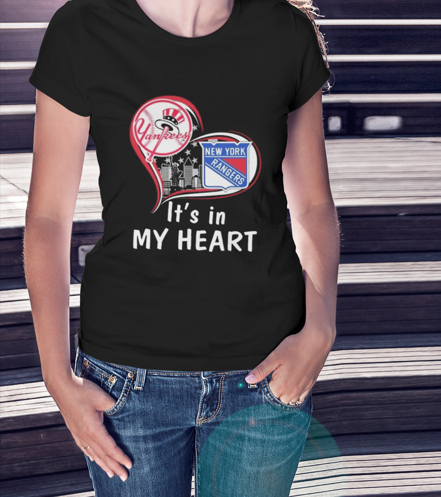 New York Yankees New York Rangers It’s In My Heart Skyline T-Shirt