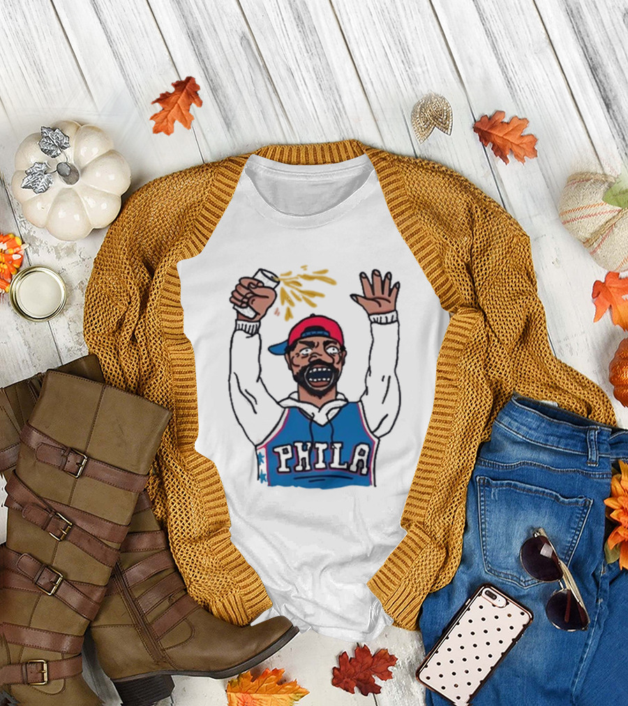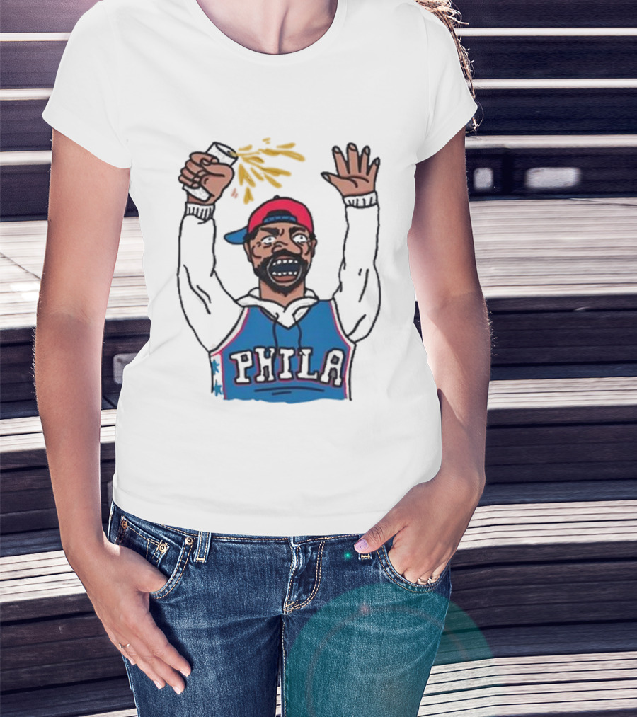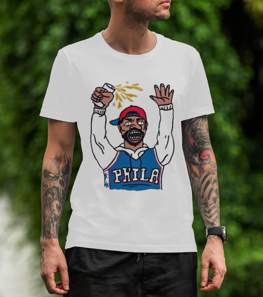 Phillygoat Phila Sixers Fan With Spray Can And Raised Hand T-Shirt