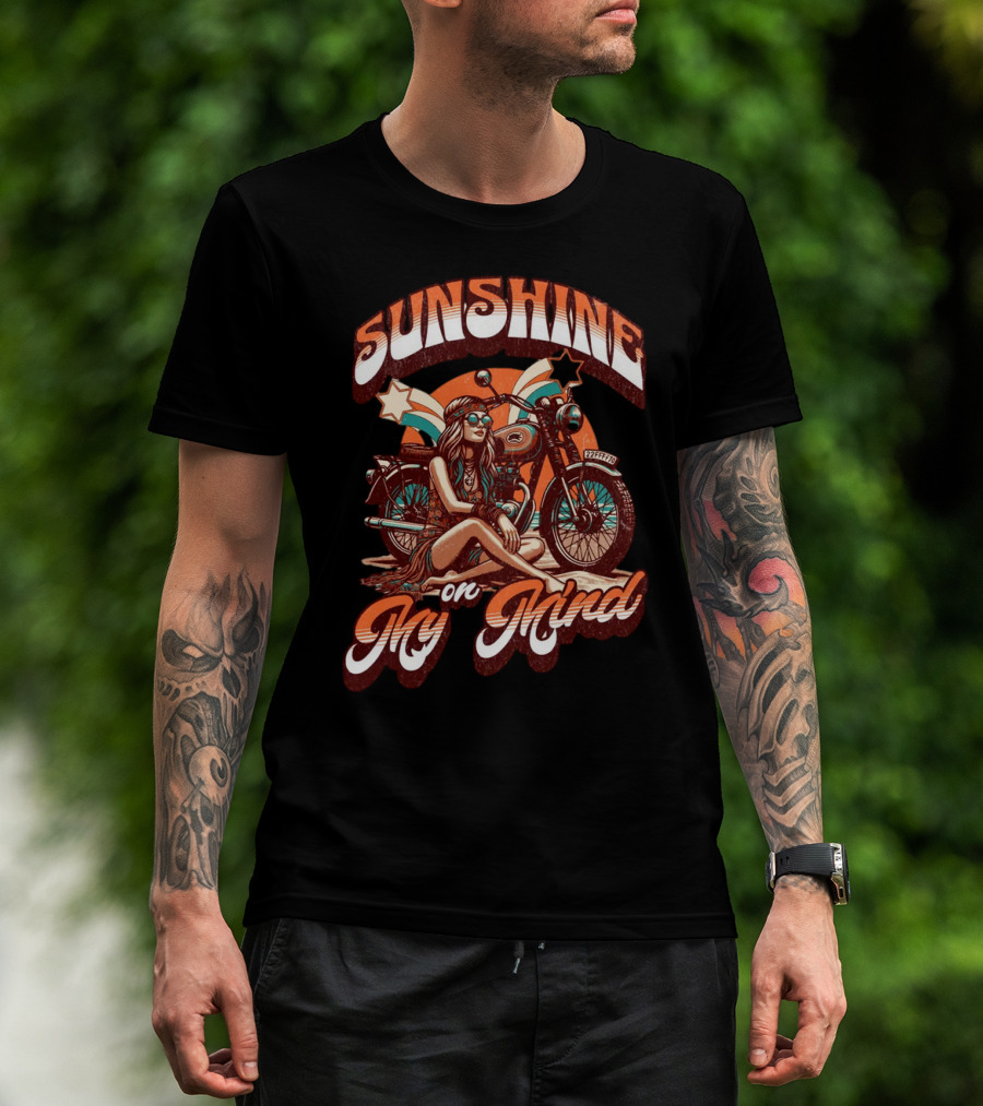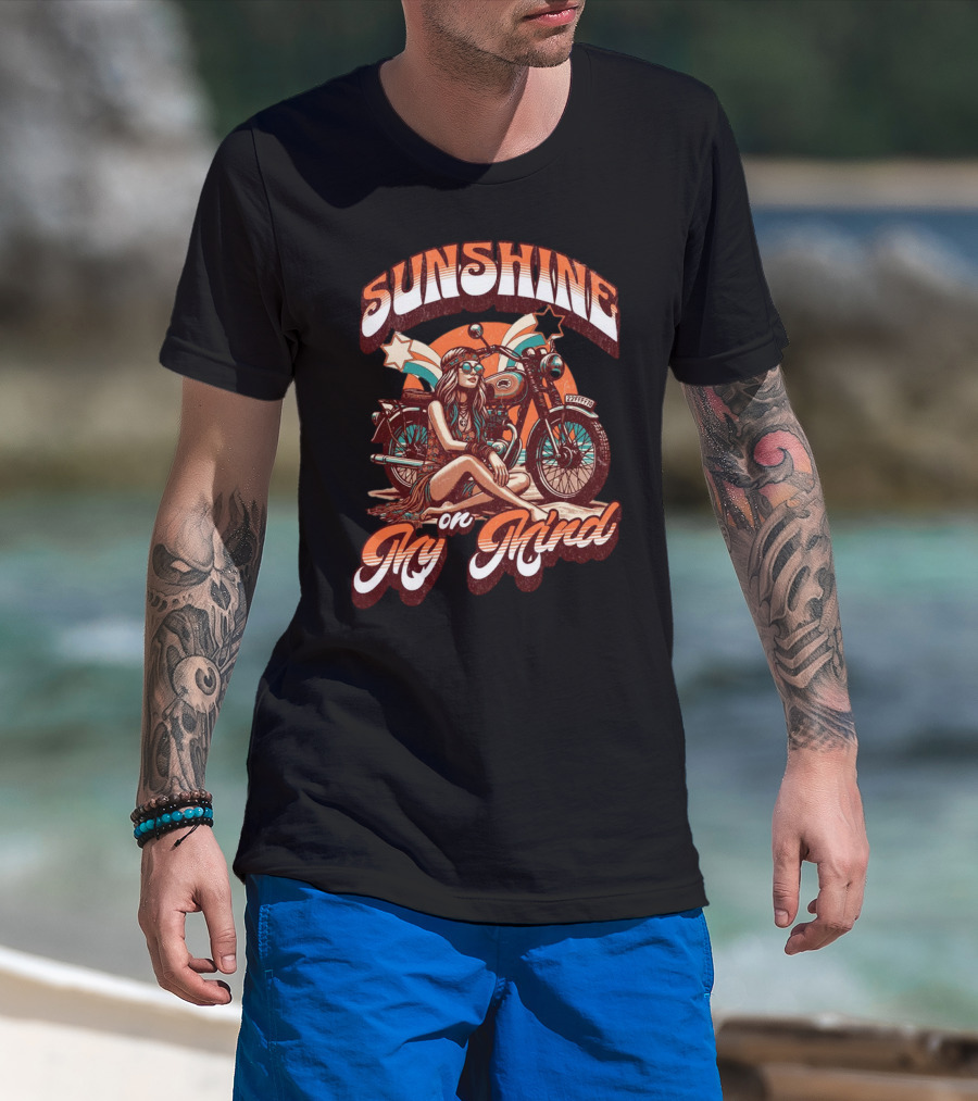 Sunshine On My Mind Hippie Motorcycle Sunset Retro Summer T-Shirt