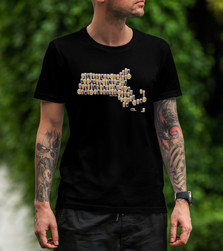 Massachusetts Brews Cheers Commonwealth Map Beer Glasses T-Shirt