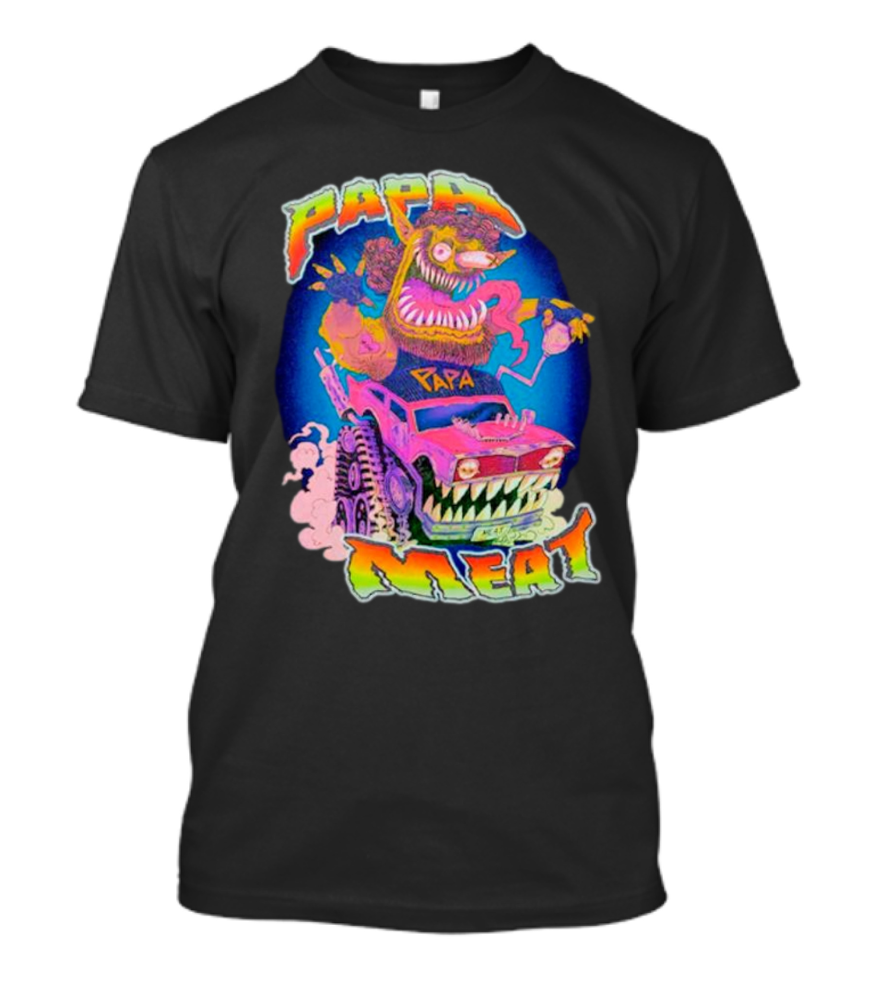 The PAPA MEAT GRILLHOU5E MONSTER CAR T-shirt is designed for everyday wear and a consistent fit. Fabric is pre-shrunk ring-spun cotton with durable stitching. See the size chart below for exact measurements.